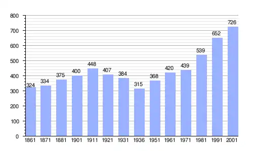 | Gráfica de evolución demográfica de Bregano entre 1861 y 2001 |
