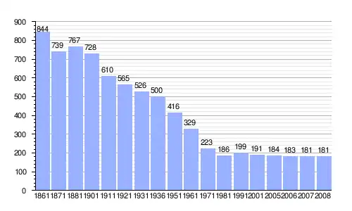 | Gráfica de evolución demográfica de Breia entre 1861 y 2008 |
