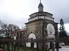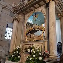 Altar con la urna de Santa Minia, con acceso por la parte trasera, en el lugar de Pedrouzos