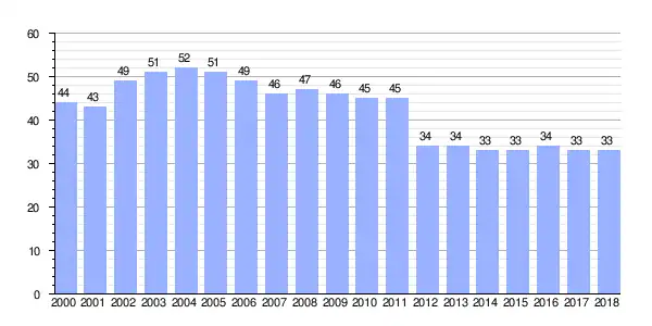 | Gráfica de evolución demográfica de Brión de Arriba entre 2000 y 2018 |