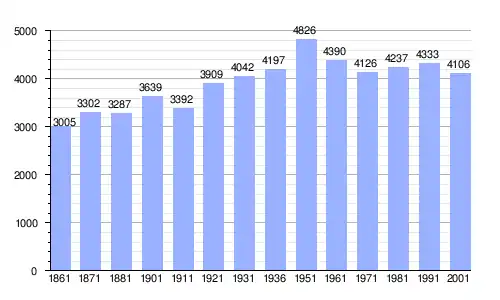 | Gráfica de evolución demográfica de Briatico entre 1861 y 2001 |