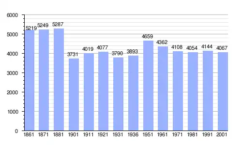 | Gráfica de evolución demográfica de Brienza entre 1861 y 2001 |