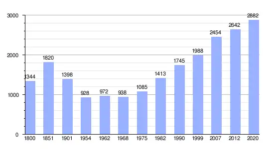 | Gráfica de evolución demográfica de Briscous entre 1800 y 2020 |