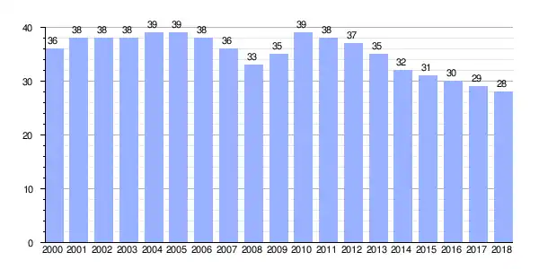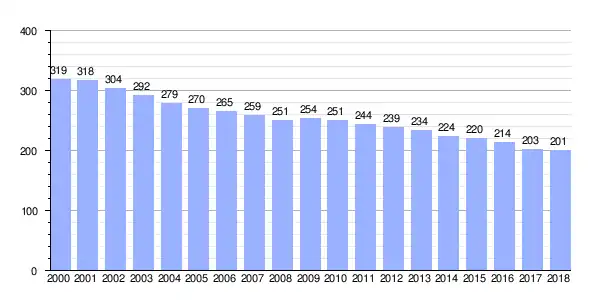 | Gráfica de evolución demográfica de Broño (parroquia) entre 2000 y 2018 |