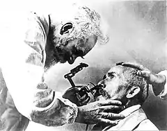 La broncoscopia terapéutica o intervencionista, es un procedimiento médico que consiste en la aplicación de procedimientos por vía endoscópica para el tratamiento de diversas enfermedades del aparato respiratorio, principalmente en la tráquea y los bronquios principales. Sus inicios datan desde la invención del broncoscopio rígido por Gustav Killian en 1896 y se encuentran informes de extracción de cuerpos extraños desde los primeros años del siglo XX, así como de resecciones mecánicas, aplicación de electrocirugía e incluso implantación de prótesis en los primeros 20 o 30 años después de su desarrollo.[1] Sin embargo, esta técnica se había abandonado por las enormes limitaciones en la realización del examen, el desconocimiento de las propiedades físicas de la electricidad aplicadas a los tejidos biológicos y por la disminución en la enseñanza de la broncoscopia rígida en los programas de neumología y cirugía torácica. El resurgir de estos procedimientos se debe a las investigaciones de Jean Francois Dumon, padre de la broncoscopia intervencionista y al desarrollo acelerado de la anestesia general.[2]