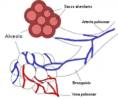 Los bronquiolos respiratorios marcan el comienzo del sector respiratorio, donde tiene lugar el intercambio de los gases entre la sangre y el aire alveolar.[5]