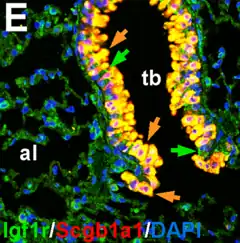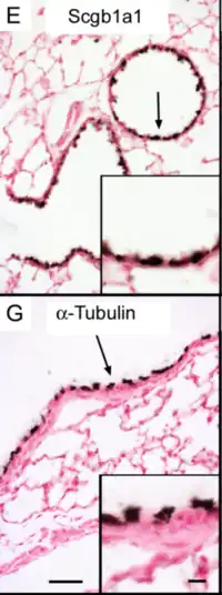 Las células de Clara de tipo secretor, representan el 20% de todas las células en el epitelio de la pequeña vía aérea humana.[8]