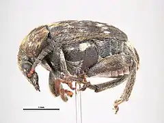 Presenta metamorfosis completa, con fases de larva, de crisálida y adulta. Los adultos miden de 2-3,5 mm y nacen en primavera.[2]