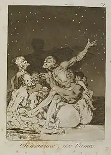 Alrededor de una cuarta parte de la colección de grabados de Los Caprichos está dedicada a la brujería, "cuyos subtítulos reproducen a veces lemas de los ilustrados o condensaciones populares recogidas por aquéllos". "Goya pretende en sus Caprichos levantar la voz de la razón —idioma que espera todos entiendan— para exponer la miseria de la credulidad y desterrar la crasa ignorancia de la mente humana esclava del instinto, del interés del egoísmo". Por eso para Goya, como para Moratín y el resto de ilustrados, "la brujería es vieja, fea, celestinesca, repugnante e hipócrita. En las caras brujeriles violentamente retorcidas, en sus repulsivas y desgarradas muecas, en sus deformes bocas abiertas y expresiones infrahumanas adivinamos al agente de Satán", afirma Carmelo Lisón.[7]