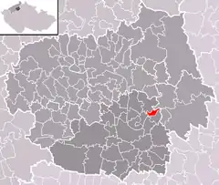 Se encuentra ubicada al este de la región, cerca de la orilla de los ríos Elba y Ohře, y de las regiones de Liberec y Bohemia Central.[1]