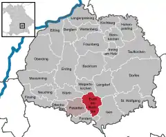 Se encuentra ubicado en la zona centro-sur del estado, en la región de Alta Baviera, a poca distancia al sur del río Danubio y al oeste de la frontera con Austria.