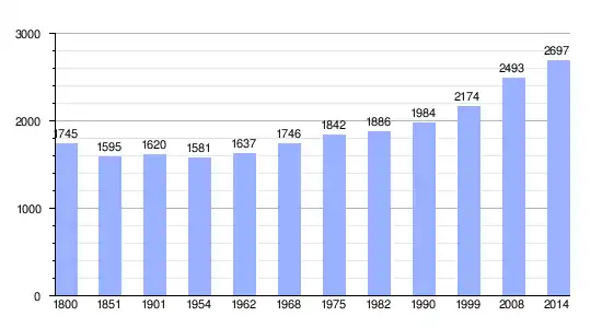 | Gráfica de evolución demográfica de Buchy (Sena Marítimo) entre 1800 y 2014 |