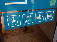 Las personas que usan audífonos pueden identificar espacios con bucle magnético disponible gracias a un símbolo accesibilidad auditiva que los identifica.[3]