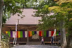 Kūkai funda en el año 816, con la ayuda del Emperador Saga, un monasterio en el monte Koya y establece la secta Shingón. Fue uno de los emisarios enviados a China junto a Saicho y sigue las doctrinas del budismo esotérico Vajrayana. En 921 se le concede el título póstumo de Kōbō-Daishi “Gran maestro que expande el budismo por doquier”.