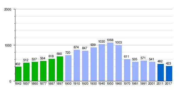 Población de derecho (1842-1897, excepto 1857 y 1860 que es población de hecho) según los censos de población del siglo XIX.[9] Población de derecho (1900-1991) o población residente (2001) según los censos de población del INE.[9] Población según el padrón municipal de 2011[10] y de 2017 del INE. |