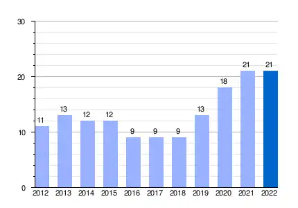 | Gráfica de evolución demográfica de Buenavista entre 2012 y 2022 |