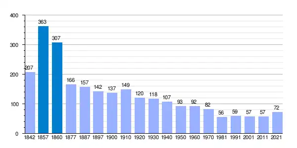 | Gráfica de evolución demográfica de Buitrago[7] entre 1842 y 2021 |