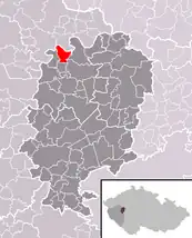 Se encuentra ubicada al noreste de la región, en la cuenca hidrográfica del río Berounka —un afluente izquierdo del río Moldava que, a su vez, lo es del Elba—, y cerca de la frontera con la región de Bohemia Central.[1]