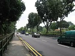 La ruta de Bukit Timah de 25 km de extensión, es la más larga de Singapur, la misma conecta el norte con el sur de la isla. El camino hacia Kranji se completó en 1845. Al parecer, en la zona vivían numerosos tigres que constituían una grave amenaza para la población humana. En 1860, cerca de 200 personas fueron asesinadas por los tigres cerca de las plantaciones de uña de gato (o gambier) y pimienta. Hacia 1840 se realiza el primer cruce a caballo de la isla por la Bukit Timah Road, tomó cuatro días y fue realizado por el Sr. Thomson, y el Dr. Little.