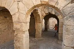 Las arcadas sobre la calle que soportan los niveles superiores de las gradas de la cavea todavía son visibles y demuestran la necesaria adaptación de la circulación del lugar de recreo sobre el espacio público[56]