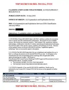 - «(U//FOUO) PROJECT BULLRUN/2-16» [(U//FOUO) PROYECTO BULLRUN/2-16] (PDF). Cryptome (en inglés). 16 de junio de 2010. Archivado desde el original el 23 de febrero de 2022. Consultado el 23 de febrero de 2022.
