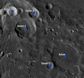 Por convención estos elementos son identificados en los mapas lunares poniendo la letra en el lado del punto medio del cráter que está más cerca de Bunsen.