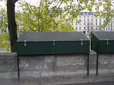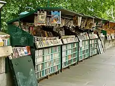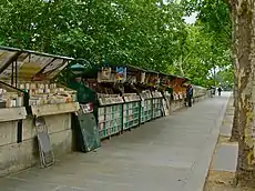 Los "bouquinistes de París", Francia, son los vendedores de libros usados y antiguos que ejercen su oficio a lo largo de amplios sectores de las orillas del Sena: en la margen derecha del Pont Marie al Quai du Louvre, y en la orilla izquierda del Quai de la Tournelle al Quai Voltaire.[7] El Sena se describe así como el único río en el mundo que se extiende entre dos filas de estanterías y puestos de venta.[8][9][10]