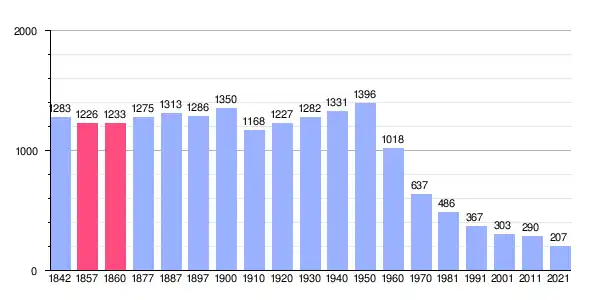 | Gráfica de evolución demográfica de Burbáguena[4][5] entre 1842 y 2021 |