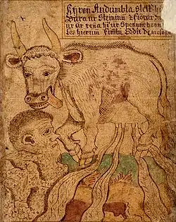 Buri fue el primer dios en la mitología nórdica. Fue el padre de Bor y abuelo de Odín.[1] Fue despertado del hielo por la vaca Auðumbla que lamía el hielo salado de Ginnungagap.[2] La única fuente existente de este mito es la Edda prosaica de Snorri Sturluson.