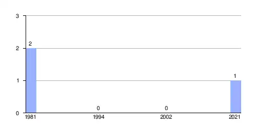 | Gráfica de evolución demográfica de Burinec entre 1981 y 2021 |