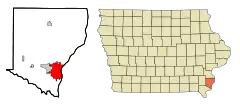 ![]() Localización de Burlington en el Condado de Des Moines, Iowa. ![]() Ubicación de Iowa en EE. UU. | ||