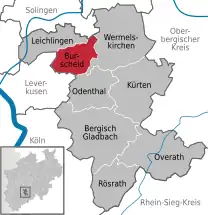 ![]() Burscheid Ubicación en el estado de Renania del Norte-Westfalia | ||||
