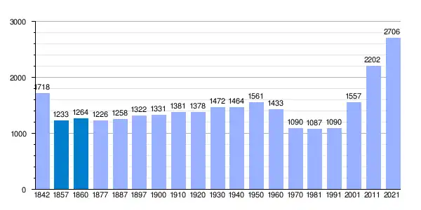 | Gráfica de evolución demográfica de Bustarviejo[20] entre 1842 y 2021 |