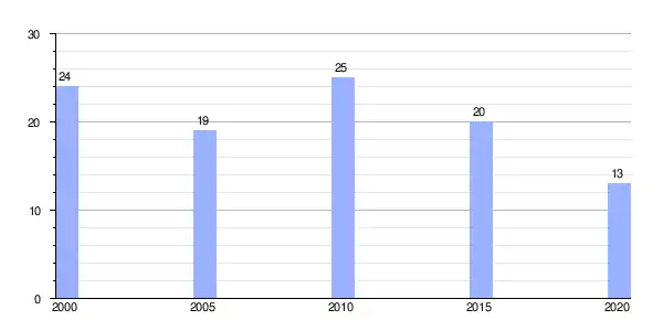 | Gráfica de evolución demográfica de Bustelo de Fisteus (parroquia) entre 2000 y 2020 |