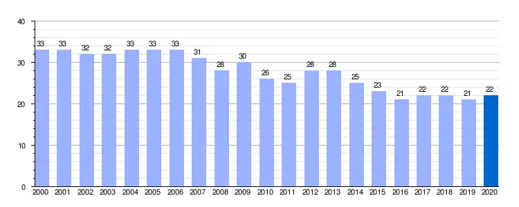 | Gráfica de evolución demográfica de Bustillo de Santullán entre 2000 y 2020 |