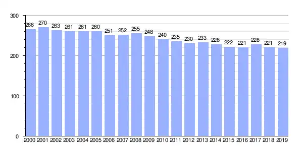 | Gráfica de evolución demográfica de Busto entre 2000 y 2019 |
