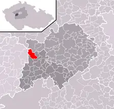 Se encuentra ubicada al oeste de la región y de Praga, en la cuenca hidrográfica del río Berounka —un afluente izquierdo del río Moldava—, y cerca de la frontera con la región de Pilsen.[1]