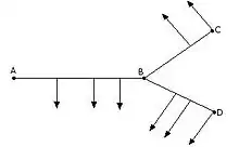 En este caso, se calcula la rama principal, según los métodos anteriores, considerando la suma de todas las cargas de las ramas secundarias aplicadas en el punto de unión entre las ramas principal y secundaria.