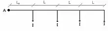 En este tipo de líneas aparece el punto de mínima tensión, que es aquel en donde la C.D.T. es máxima. Dicho punto puede considerarse como el centro de gravedad de la línea. Para su cálculo: