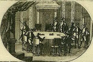 - Convocar las Cortes del reino para el juramento de los reyes y príncipes herederos y otros asuntos públicos de la mayor consideración.