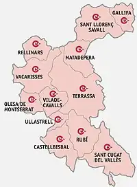 Pese a ello, el núcleo empresarial de la demarcación se concentra especialmente en los municipios de Tarrasa, Rubí, San Cugat del Vallés y Castellbisbal, con la siguiente correspondencia: