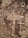 Entre los grabados también hallamos toda una serie de elementos religiosos de diferente índole, custodias, penitentes, calvarios y cruces.
