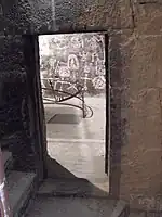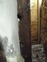 El tránsito a la planta inferior se efectúa a través de dos aberturas cuadrangulares realizadas sobre el suelo de la planta intermedia. La bajada de presos a la planta inferior se efectuaba a través de unas cuerdas enlazadas sobre las dos argollas clavadas sobre la bóveda de la planta intermedia, cada una de las cuales se encuentran en perpendicular a cada una de las oberturas del suelo.