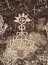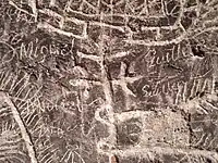 A su vez encontramos muchos dibujos que hacen alusión a elementos de la naturaleza como animales y árboles. También aparecen rasgos geométricos, a base de líneas cortas y paralelas, que pueden ser la cuenta de los días que los presos pasaron en la cárcel.