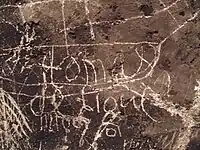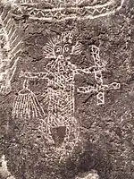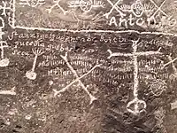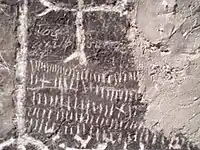 Esta inscripción aparece debajo del altar del muro oeste de la sala intermedia, y reza: