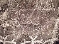 Este reo, Miguel Guillén, escribió su nombre en innumerables ocasiones, probablemente aprendió a escribirlo en la cárcel y de ahí la cantidad y la diferencia en la calidad de las diferentes inscripciones.