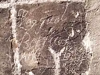 José Grillo también dejó constancia de los días que permaneció recluido, desgraciadamente la restauración de la saetera contigua ocultó parte de la inscripción.