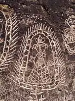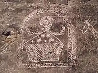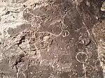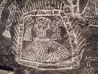 La sala intermedia es la que conserva un mayor número de grabados y en mejor estado de conservación se hallan, ubicados en sus cuatro paredes hasta una altura de dos metros.