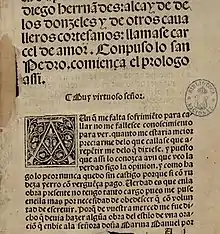 Cárcel de Amor es una obra de Diego de San Pedro, perteneciente al género de la novela sentimental. La primera edición de la novela, dedicada a Diego Fernández de Córdoba, se imprimió en Sevilla en 1492 y tuvo un enorme éxito, haciéndose durante los siglos XV y XVI veinte reimpresiones en España. Fue traducida a las principales lenguas europeas, y se hicieron numerosas ediciones bilingües y trilingües, que indican un probable uso didáctico. Como modelo de prosa literaria fue elogiada por Baltasar Gracián en su Agudeza y arte de ingenio.