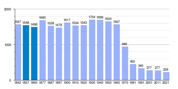 | Gráfica de evolución demográfica de Cástaras[8] entre 1842 y 2021 |